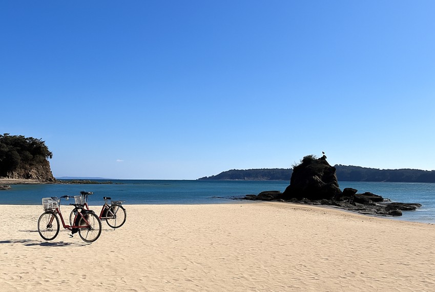 대마도에서 가장 예쁜 해변으로 꼽히는 미우다 해수욕장. 맑은 바다와 백사장이 펼쳐져 있습니다.