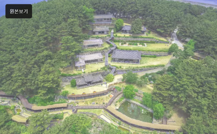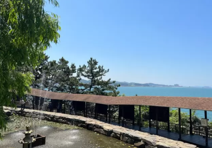 회랑을 따라 걷다 보면 바닷바람에 흔들리는 해송 숲, 대나무 숲, 그리고 곳곳에 자리한 전통 한옥과 조형물이 어우러져 고즈넉한 한국 정원 풍경을 만날 수 있습니다.