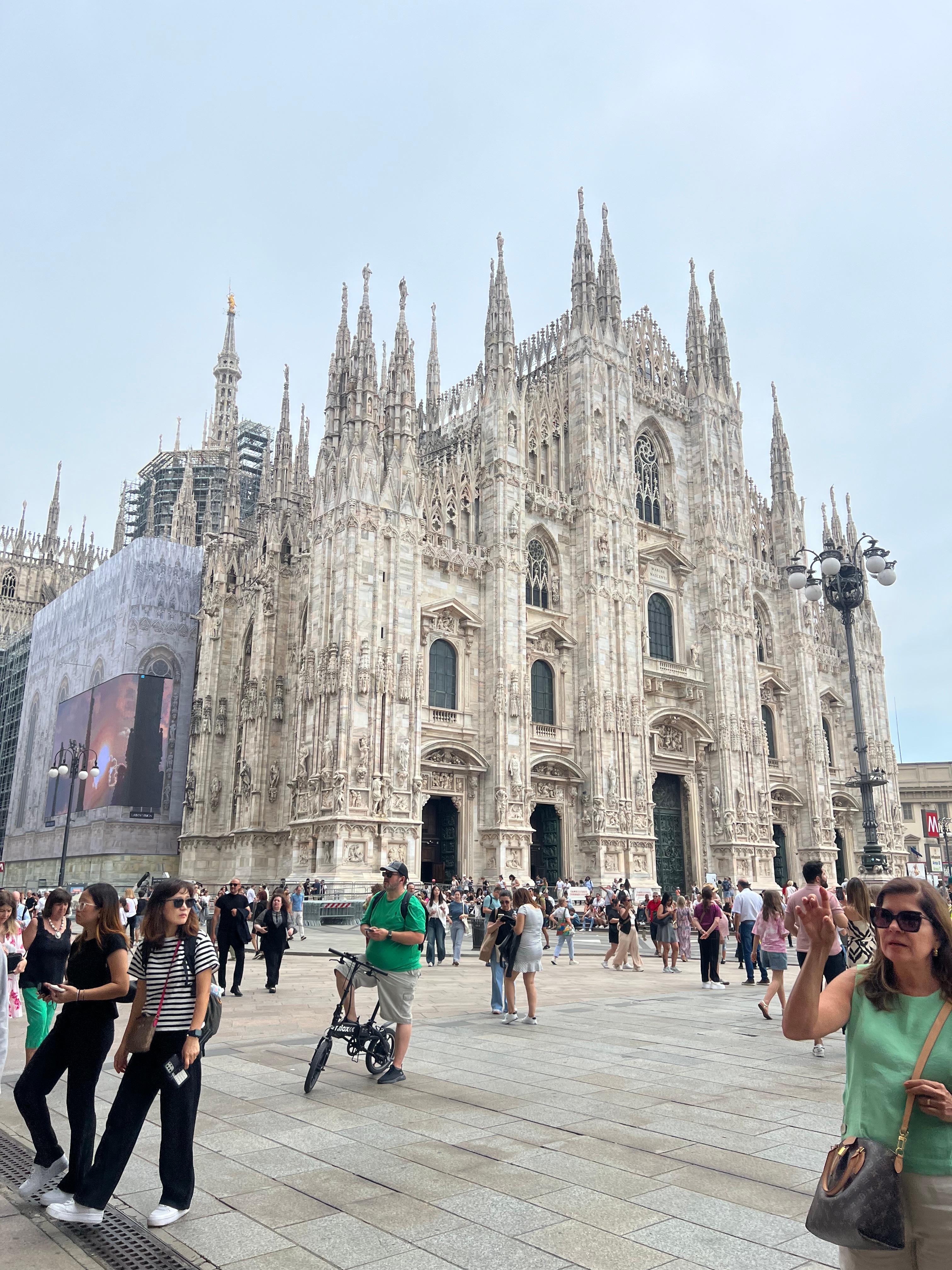 밀라노 여행의 시작은 단연 **두오모 광장(Piazza del Duomo)**입니다. 이 광장은 밀라노의 상징인 두오모 대성당이 자리한 곳으로, 언제나 사람들로 붐빕니다. 직접 두오모 앞에 서면 그 웅장함에 숨이 막힐 정도입니다.