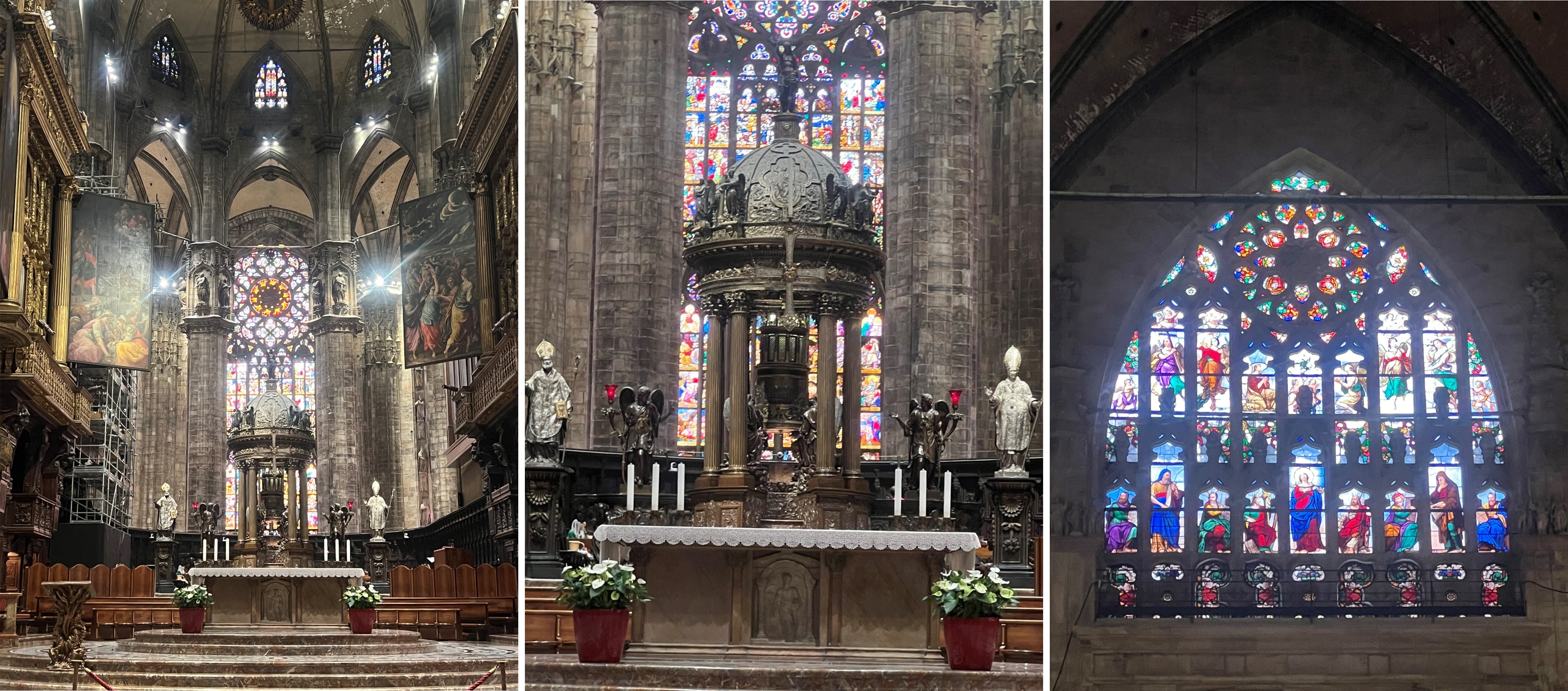 성당 내부는 또 다른 세계였습니다. 스테인드글라스에서 쏟아져 들어오는 빛이 신비로운 분위기를 자아내고, 조용히 기도를 드리는 현지인들과 관광객들이 경건한 시간을 보내고 있었습니다. 두오모의 꼭대기까지 올라가면 밀라노 시내 전경이 한눈에 펼쳐져 사진 찍기에도 완벽한 포인트가 됩니다.