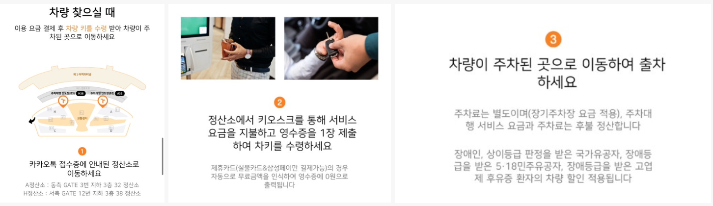| 귀국 후 차량 인수 | 단기주차장 지하 3층 정산소에서 수령 | 장기주차장에서 셔틀 or 직접 이동 |