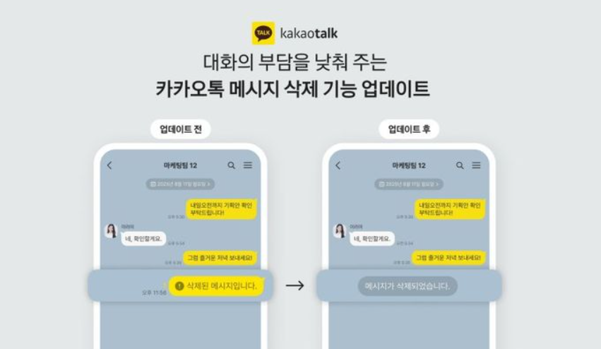 카카오톡이 7년 만에 메시지 삭제 기능을 대폭 개선했습니다.