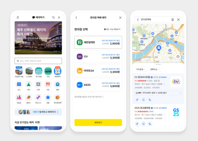 카카오가 카카오톡 예약하기와 카카오맵에 ‘편의점 택배’ 예약 서비스를 새롭게 오픈했습니다. 이제 GS25, CU, 세븐일레븐, 이마트24 등 주요 편의점의 택배를 별도 앱 설치 없이 카카오톡과 카카오맵에서 편리하게 예약할 수 있습니다. 출시 기념으로 택배비 할인 프로모션도 함께 진행돼 더욱 합리적인 가격에 택배를 이용할 수 있습니다.