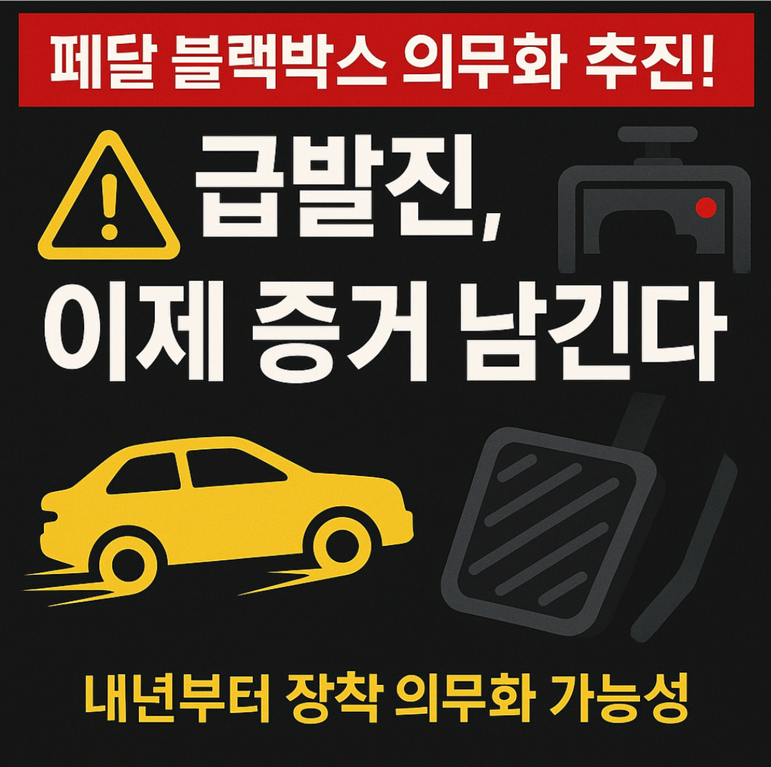 향후 페달 블랙박스는 선택이 아닌 필수가 될 전망으로, 전면 확대까지 단계적으로 진행될 예정입니다.