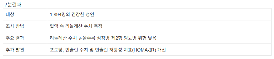 | 주요 효과 | 심혈관 질환·제2형 당뇨병 예방, 염증 완화 |