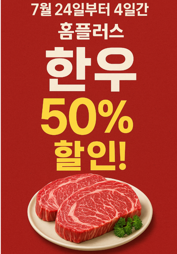 ✅ 반값 한우 할인 기간: 7월 24일(목) ~ 7월 27일(일)
