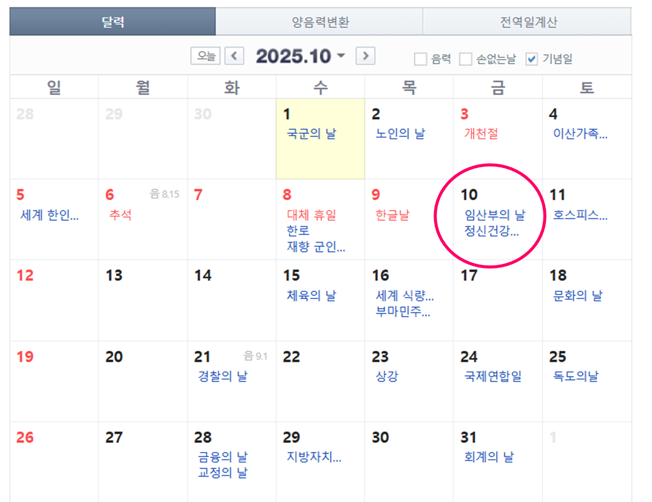 올해 2025년 10월은 달력을 보면 설레는 이유가 있습니다.