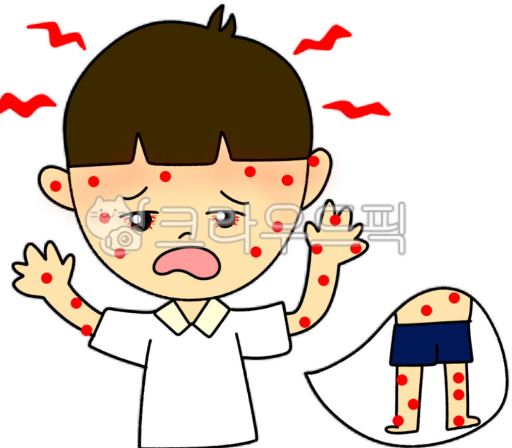 3. 발진기: 발진은 목, 귀 뒤, 이마에서 시작해 전신으로 퍼짐