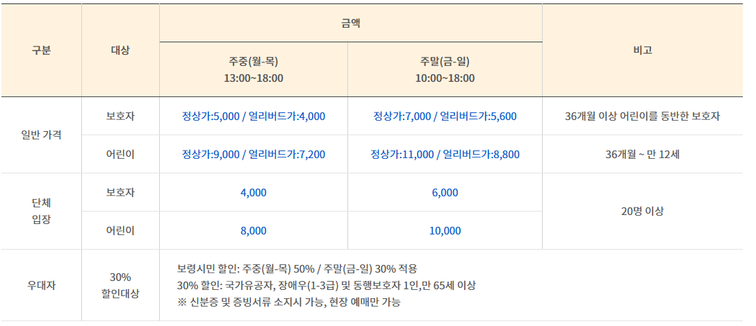 - 얼리버드 할인 및 보령시민, 국가유공자 등 할인 혜택은 공식 홈페이지 참고