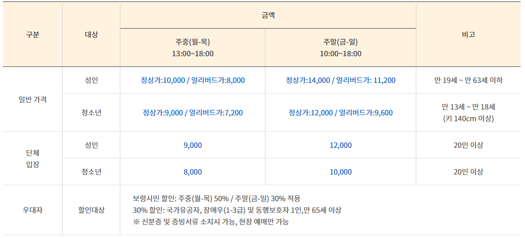 | 주말(금~일) | 오전 10시 ~ 오후 6시 (10:00~18:00) |