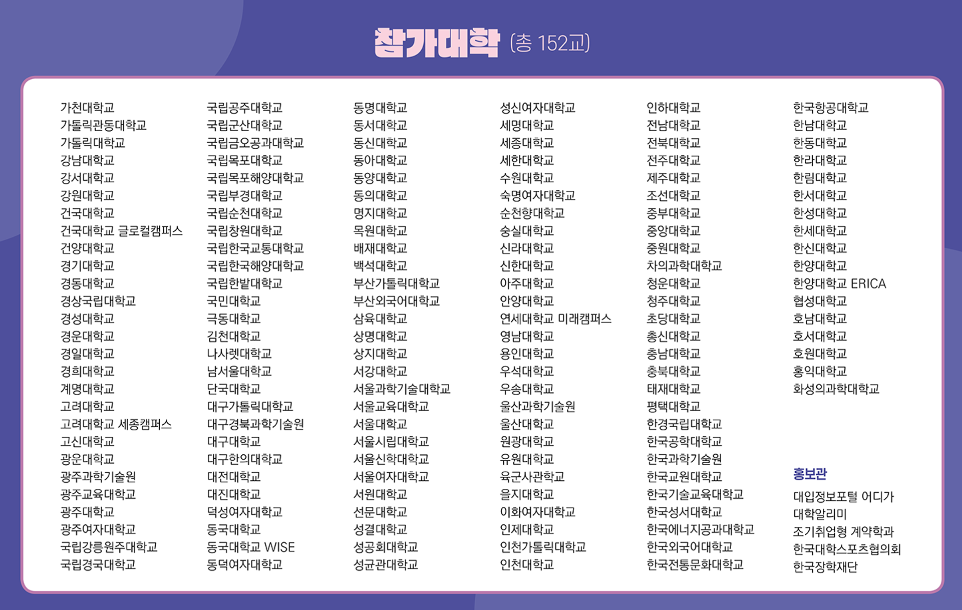 ✅ 총 152개 대학 참여 (지난해 대비 3개교 증가)