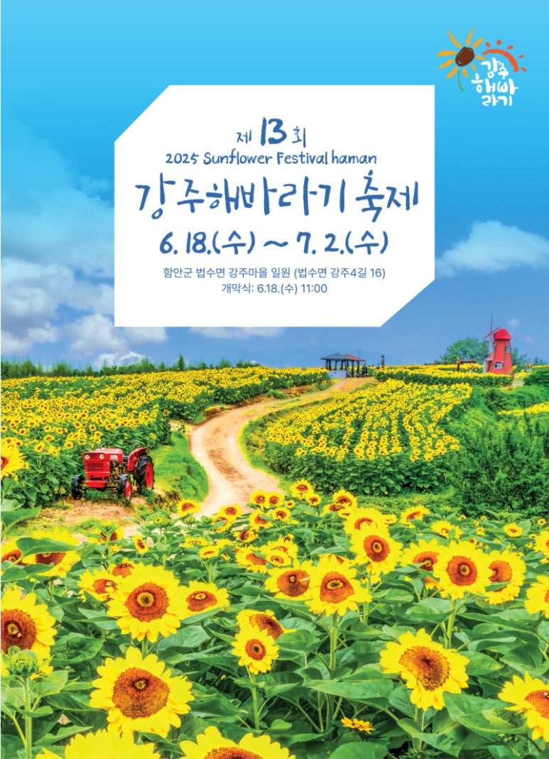 [6월 여행지 추천] 수십만 송이 노란 물결... 제13회 경남 함안 강주해바라기 축제