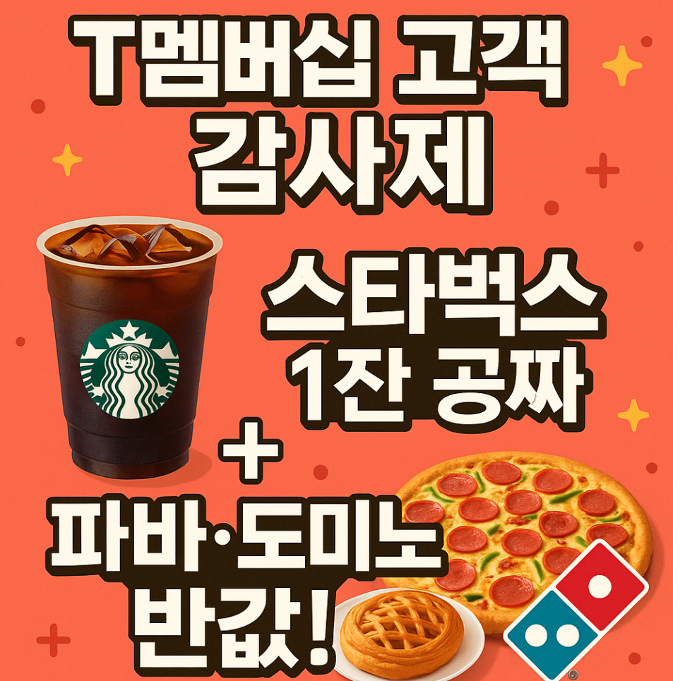 | ☕ 스타벅스 무료 | 8/1 ~ 8/10 | 8/1 ~ 9/30 | 아메리카노 톨 사이즈 1잔 무료 (T멤버십 앱 발급) |